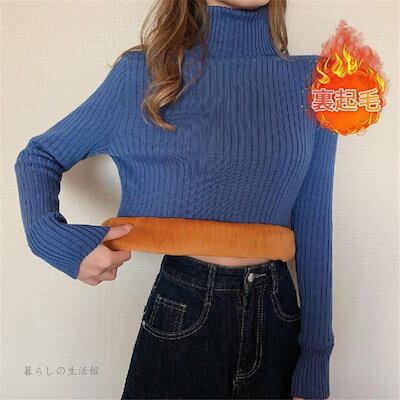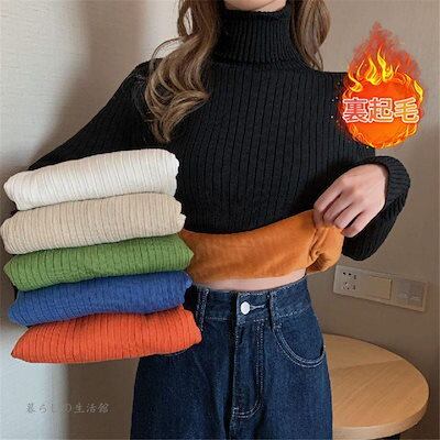 保温 暖か リブ インナー レディース 裏ボア 長袖 セーター 厚手 ハイネック タートルネック ニット 裏起毛 プルオーバー トップス 防寒対策