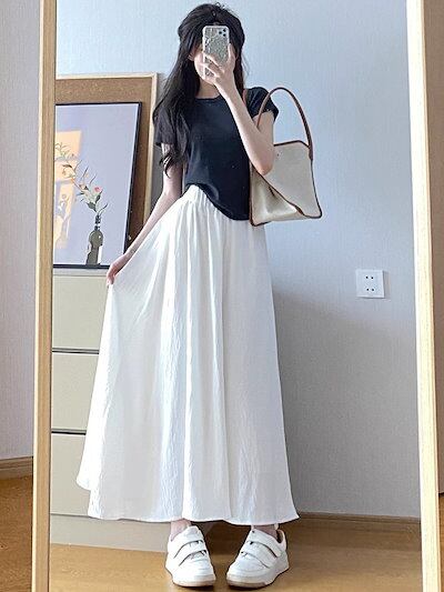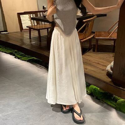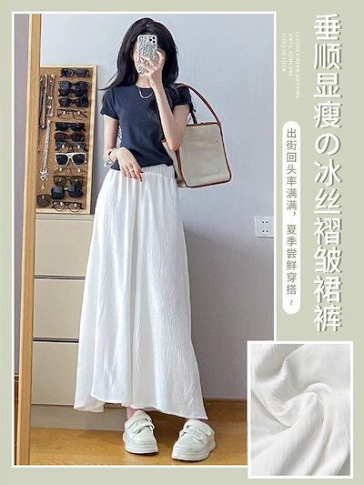 Qoo10限定 ワイドパンツキュロット夏の薄手小柄プリーツスカート超仙女ハイウエストストレート プリーツスカート 韓国 ロングスカート レディース