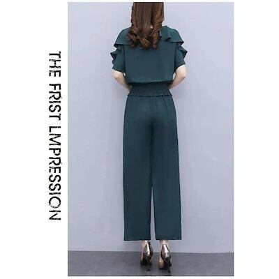 【2点セット】涼しく楽ちん セットアップ レディース 40代 半袖 通勤ハイウエストショーツ2点セット レース ワイドパンツ カジュアル オシャレ 韓国風 着痩せ 大きいサイズ