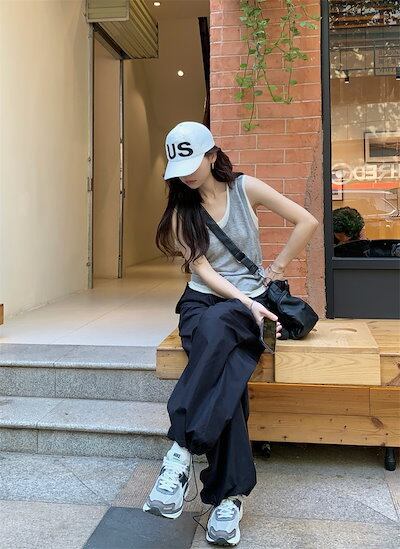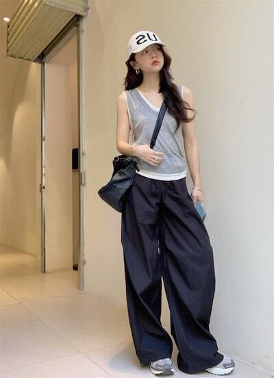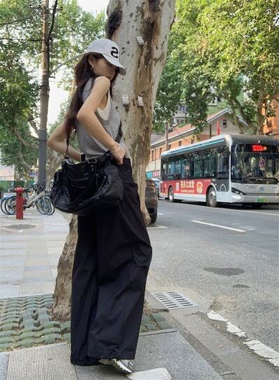 2024春夏パンツ カーゴパンツ ワイド ストレート ハイウエスト 脚長効果 美脚効果 細見え 夏 黒 カジュアル おしゃれ かわいい 韓国ファッション レディース お出かけ