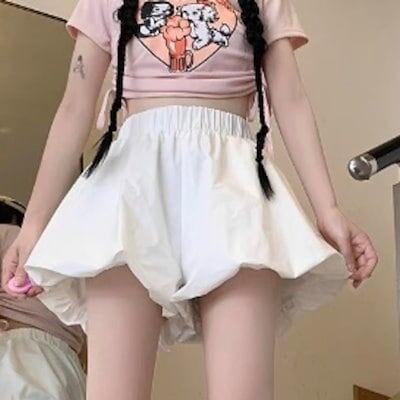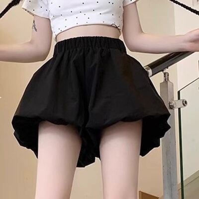 2024 春夏パンツ ショート丈 ワイド ウエストゴム ハイウエスト 脚長効果 美脚効果 細見え 夏 白 黒 カジュアル おしゃれ かわいい 韓国ファッション レディース お出かけ