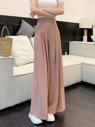 【3日以内出荷】ワイドパンツ 美脚 春夏薄手 2024新型 ハイウエストダウンで痩せ見えカジュアルモップキュロット レディース 韓国