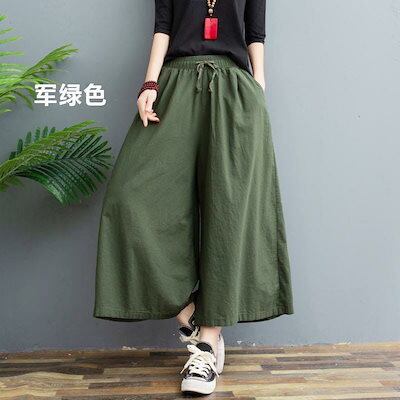 ワイドパンツスカンツ ガウチョ スカーチョ ハイウエスト 夏新作 ポケット付き リネン 綿麻 パンツ レディース 体型カバー
