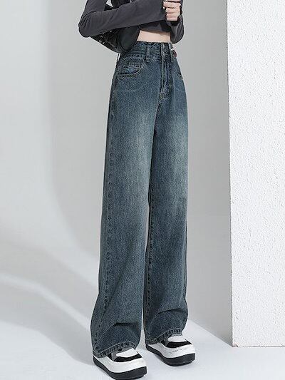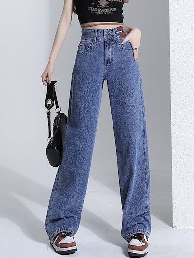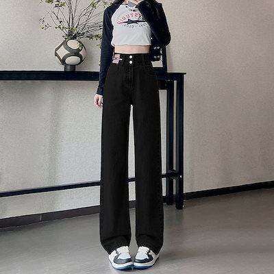デニムパンツジーンズ レディース 春秋 2024 新作 ハイウエスト 薄手 ドレープ ゆったり ワイド 引きずり ズボン
