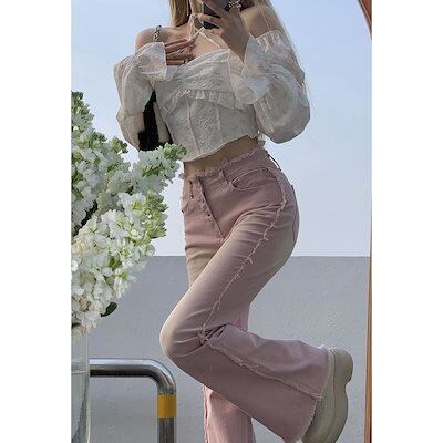 かわいい ハイウエスト デニムワイド スリム ファッション レディース 修身 ハイウエストストレートパンツ