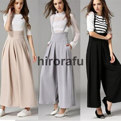 サロペット オールインワン オーバーオール レディース ワイドパンツ ロング丈 ゆったり シンプル 無地 かわいい 美脚 ストレッチ プリーツ
