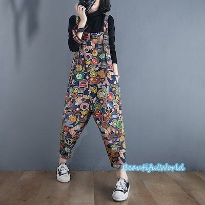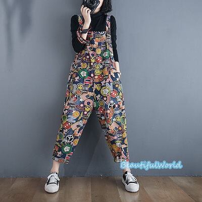 サロペット レディース サロペット パンツ オーバーオール オールインワン サスペンダー 体型カバー 着痩せ デニムオーバーオール 減齢プリント B30