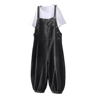 ストレートレッグデニムオーバーオールレディース春秋新韓国版ルーズラージサイズオールマッ