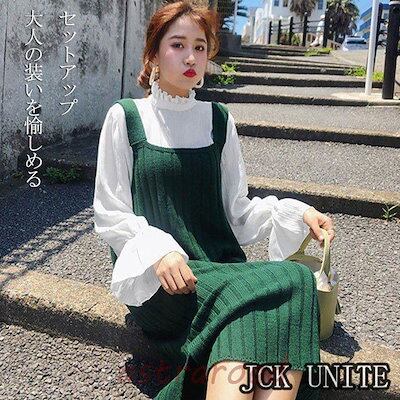 セットアップ レディース ブラウス+ サロペットスカート ニット 2点セット マタニティ ワンピース オールインワン 大きいサイズ シャツ 長袖 オーバーオール 秋