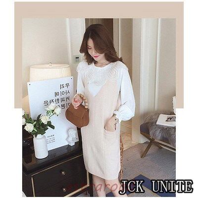 セットアップ レディース ブラウス+ サロペットスカート ニット 2点セット マタニティ ワンピース オールインワン 大きいサイズ 長袖 オーバーオール 秋 冬 服