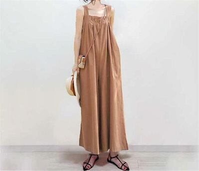 サロペット レディース オールインワン つなぎ 綿麻 オーバーオール サロペットパンツ ワイドパンツ 大きいサイズ ゆったり ボトムス オシャレ 体型カバー 着痩せ