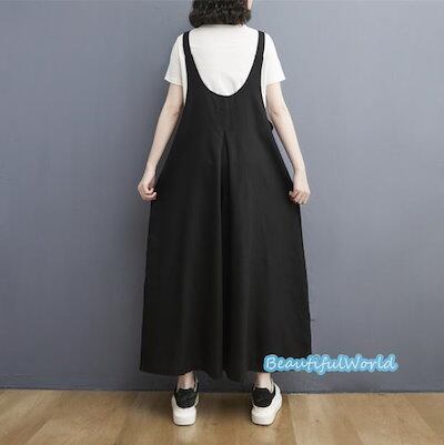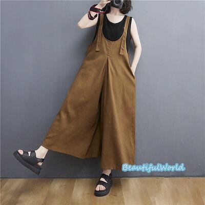 サロペット レディース サロペット パンツ オーバーオール オールインワン サスペンダー 体型カバー 着痩せ 綿麻 九分丈 B33