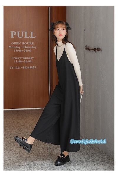サロペット レディース サロペット パンツ オーバーオール オールインワン サスペンダー 体型カバー 着痩せ ストラップ連体ワイドパンツB4