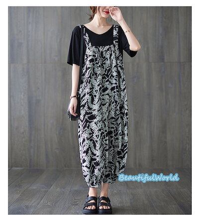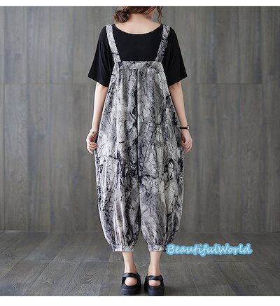 サロペット レディース サロペット パンツ オーバーオール オールインワン サスペンダー 体型カバー 着痩せレトロインクプリント 9分丈パンツ B40