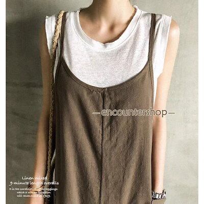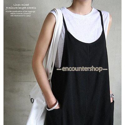 サロペット パンツ レディース オールインワン オーバーオール 夏 秋 ゆったり 麻混 ポケット 無地 ワイド
