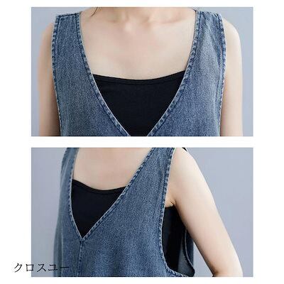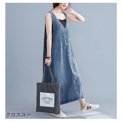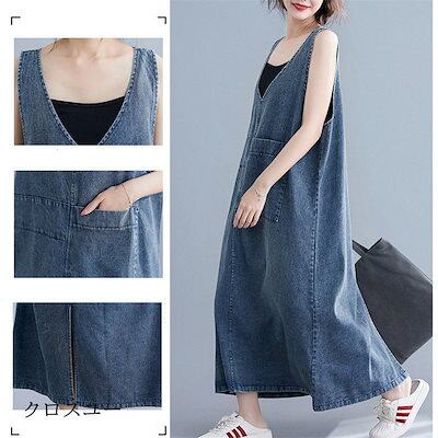 サロペットスカート レディース デニム ワンピース ロング丈 Vネック オールインワン キャミワンピ オーバーオール デニムスカート 体型カバー 春夏