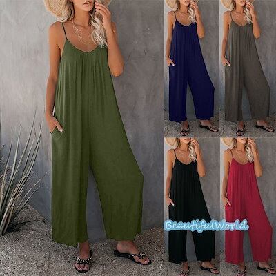 サロペット レディース サロペット パンツ オーバーオール オールインワン サスペンダー 体型カバー 着痩せ 無地 挿し袋 キャミソール B8