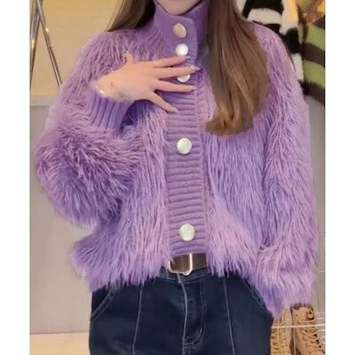 カーディガンレディース セーター 秋冬 厚手ゆったりニットアウター