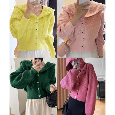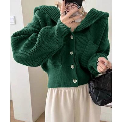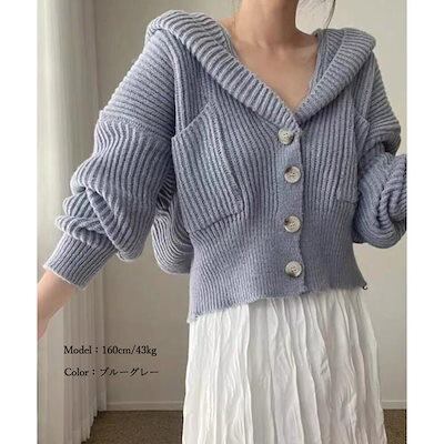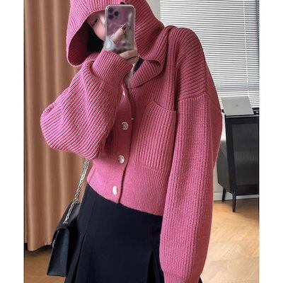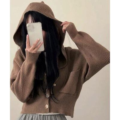 フード付きニットカーディガン ショート丈