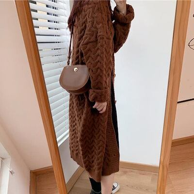 ケーブル編みニットカーディガンロング