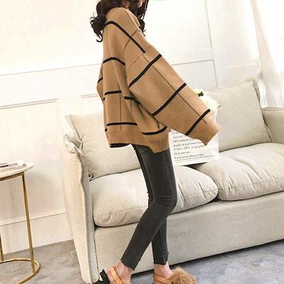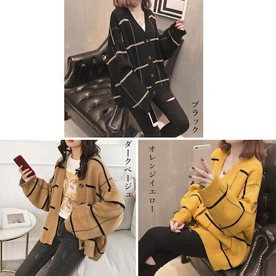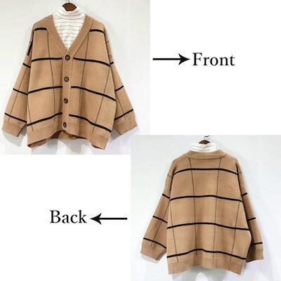 ニットカーディガン BIGチェック柄秋冬