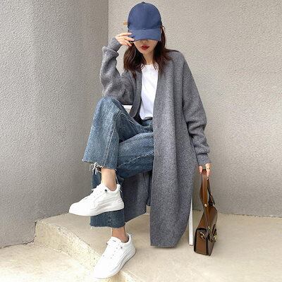ロング ニットカーディガンレディース秋冬