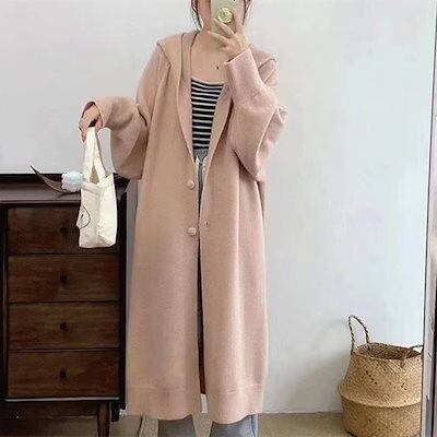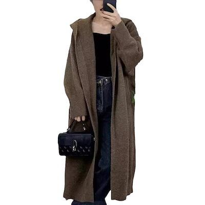 韓国ファッション ゆったり ロングニットカーディガンフード付き レディース 無地百掛けカジュアル軽薄 カーディガン 大きいサイズ体型カバー ニットセーター 着痩せ 秋アウター
