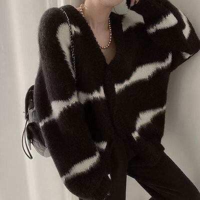 韓国ファッション ゆったりニットカーディガン レディースカーディガン 大きいサイズ体型カバー ニットセーター 着痩せ 秋アウター
