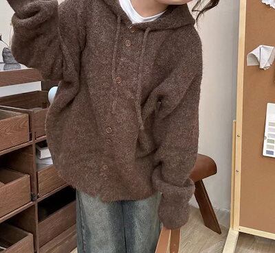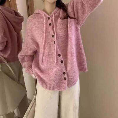 韓国ファッション ゆったり フード付きニットカーディガン レディース 無地百掛けカジュアル軽薄 カーディガン 大きいサイズ体型カバー ニットセーター 着痩せ 秋アウター