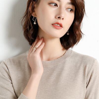 韓国ファッション ベーシックニット可愛らしい レディース セーターニット カシミヤタッチ長袖 大きいサイズ ベーシックニット