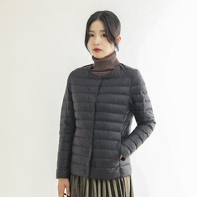 韓国ファッションアウター 薄手ダウンジャケット女性インナーVネック丸首 ダウンベスト ダウンジャケット 軽量 収納袋付