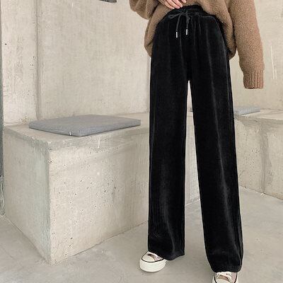 【3日以内出荷】かっこいい!スラックスパンツワイドパンツ韓国ンハイウエストニットパンツ レディースリブパンツ ワイドパンツ ガウチョパンツ