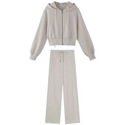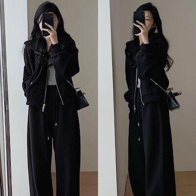 韓国 パーカー 百掛け やせて見える秋冬カジュアルパーカースポーツスーツレディースワイドパンツキャップ2点セット レディースファッション
