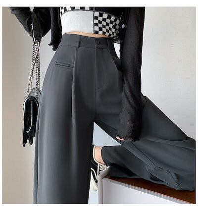 ワイドパンツ スーツパンツの高級感 2024年春夏新作 ハイウエストドレープワイドパンツ ゆったりとした細身のパンツ ワイドパンツ レディース