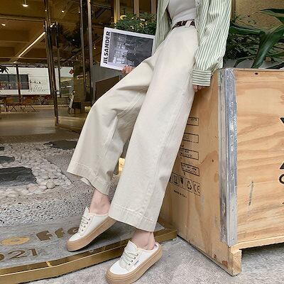 ワイドパンツ ワイドパンツ レディース ベージュストレートレッグジーンズ 2024年春夏ヴィンテージドレープワイドレッグパンツ ルーズな9分丈パンツ