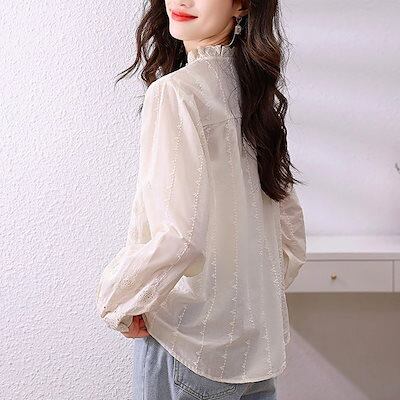 長袖 ブラウス シャツ レディース カーディガン オフィス 韓国ファッション 今っぽシアーシャツ 2024春秋の新作レースレース襟刺?シャツトップス