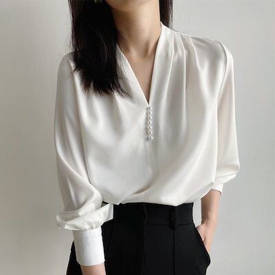 2024新入荷女性 スーツの襟 シフォン Vネック長袖トップス レディース シャツシフォンブラウス/オフィス通勤 シャツ/気質のトップス カジュアルシャツ シャツ 06