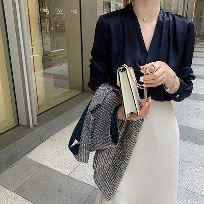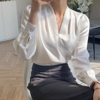 2024新入荷女性 スーツの襟 シフォン Vネック長袖トップス レディース シャツシフォンブラウス/オフィス通勤 シャツ/気質のトップス カジュアルシャツ シャツ 10