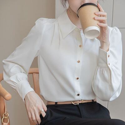 シフォンブラウス/オフィス通勤 シャツ/気質のトップス カジュアルシャツ シャツ 女性 スーツの襟 シフォン Vネック長袖トップス レディース シャツ10