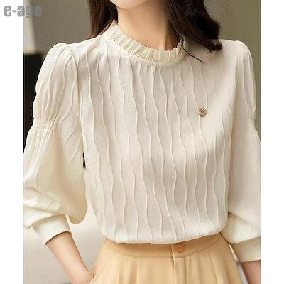 ブラウス 立ち襟 フリル レディース 長袖 シャツ 無地 白 襟フリル トップス シフォン シャツブラウス 薄手 春 夏 秋 可愛い