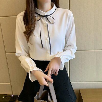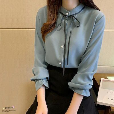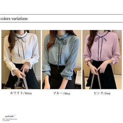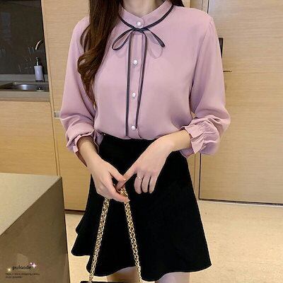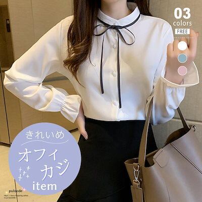 ブラウス ボウタイ 長袖 リボン ハイネック レディース トップス オフィス オフィスカジュアル きれいめ ボウタイブラウス フリル 立ち襟 上品 清楚 シャツ