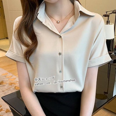 シャツ ブラウス レディース 夏秋 トップス 折り襟 開襟 半袖 就活 面接 OL 通勤 オフィス 入社式 就職 事務服 フォーマル ビジネス 大人 上品 気質 無地 着痩せ