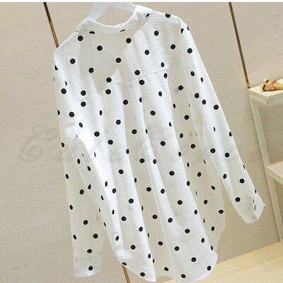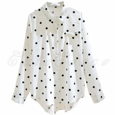 シャツブラウス レディース 長袖 折り襟 水玉柄 前開き オフィス ポケット付き Yシャツ トップス カジュアル 春秋冬 きれいめ おしゃれ
