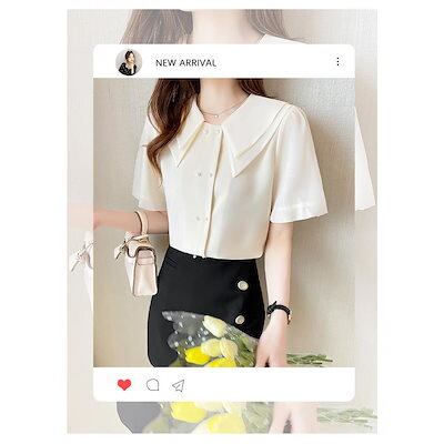 ブラウス上品 ゆったりシャツ 半袖トップス 折り襟 ブラウス 50代 40代 大人 シフォンシャツ オシャレブラウス 30代 春夏新作 レディース 通勤OL