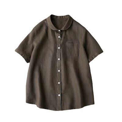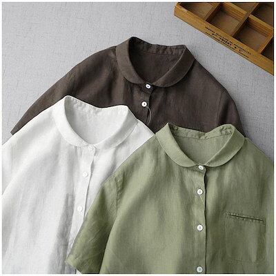 シャツ レディース 半袖 ブラウス 折り襟 綿麻シャツ 襟付き 薄手 前開き トップス 大きい カジュアル 立ち襟 通勤 通学 シンプル ゆった