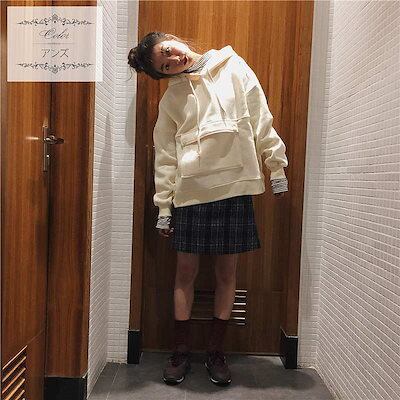 レディース トップス パーカー アウター 長袖 無地 ベルベット 秋 冬 シンプル ゆったり ポケット おしゃれ カジュアル 大人可愛い フェミニン デート お出かけ 通学 普段着 ベージュ ホワイ