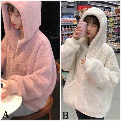 レディース トップス パーカー プルオーバー もこもこ 長袖 無地 秋冬 カジュアル 大人可愛い ラフスタイル フェミニン オフィス お出かけ デート デイリー ピンク ホワイト S M L
