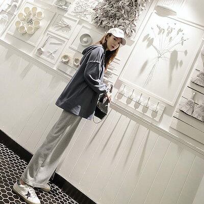 レディース トップス プルオーバー パーカー 長袖 フード付き 無地 ゆったり ルーズ カジュアル 大人可愛い フェミニン お出かけ デート デイリー ブルー フリーサイズ