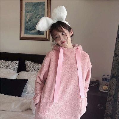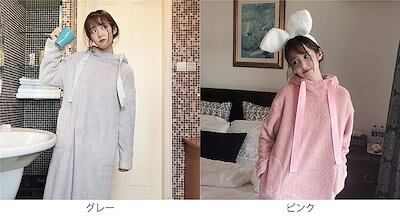レディース トップス ロング パーカー もこもこ フード付き 長袖 ポケット 無地 カジュアル 大人可愛い フェミニン ルームウェア ナイトウェア リラックス ルーズ デイリー グレー ピンク フ