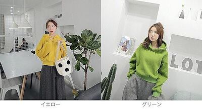 レディース パーカー スウェット フード付き ゆったり オーバーサイズ 無地 シンプル 長袖 トレーナー トップス カジュアル 大人 可愛い フェミニン おしゃれ デイリー 普段着 イエロー グリ